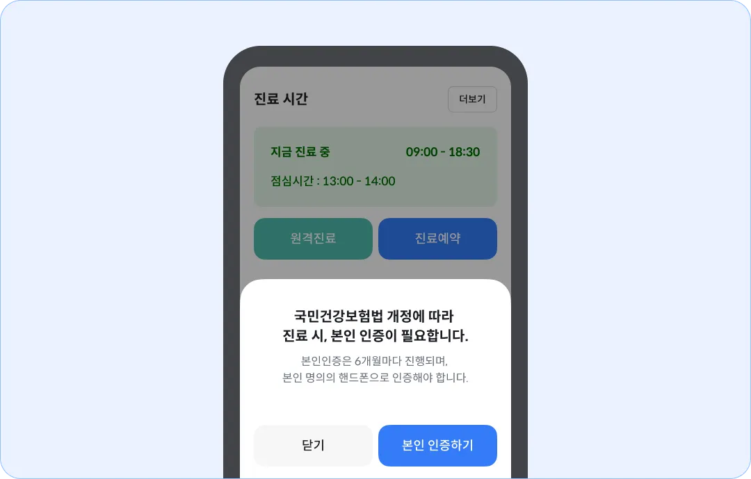「국민건강보험법 시행규칙」제7조제3호에서는 「전자서명법」제2조제2호에 따른 전자서명과 「정보통신망 이용촉진 및 정보보호 등에 관한 법률」제23조의3에 따른 본인확인기관이 제공하는 방법을 건강보험증을 대체하는 신분증명서로 인정합니다