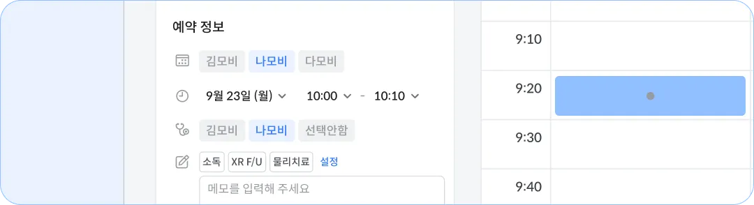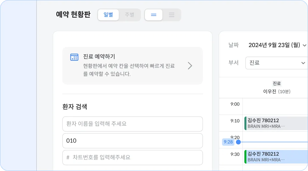 (예약현황판) 환자를 선택하지 않아도 예약정보가 시각화돼요