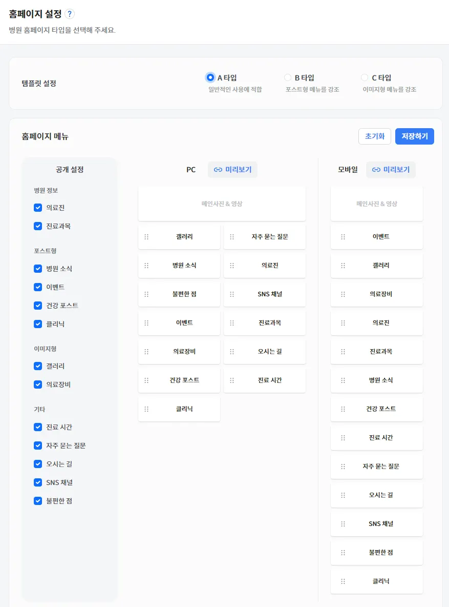 에서 사용할 컨텐츠를 선택 후 저장하기 버튼을 클릭해 주세요.