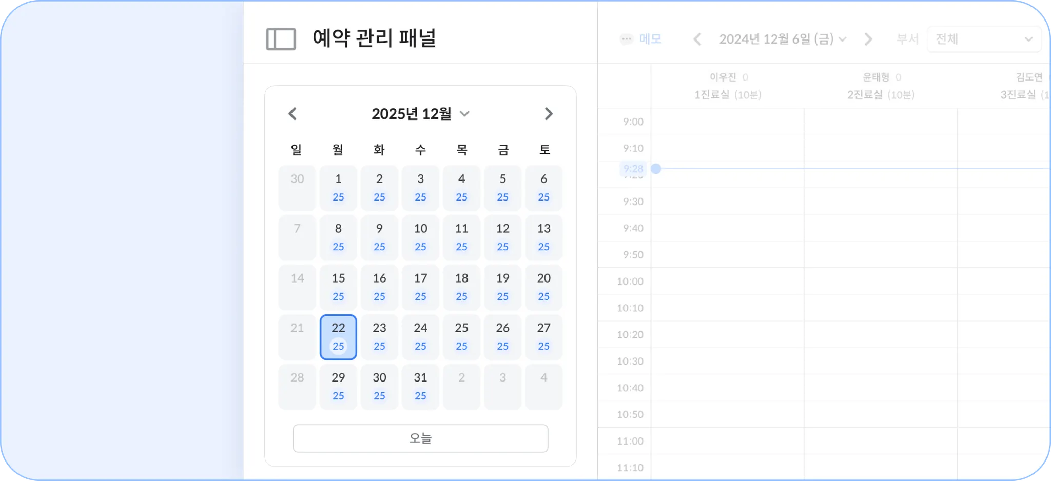 예약현황판 > 좌측 패널 (진료 예약 추가 / 변경 시)
