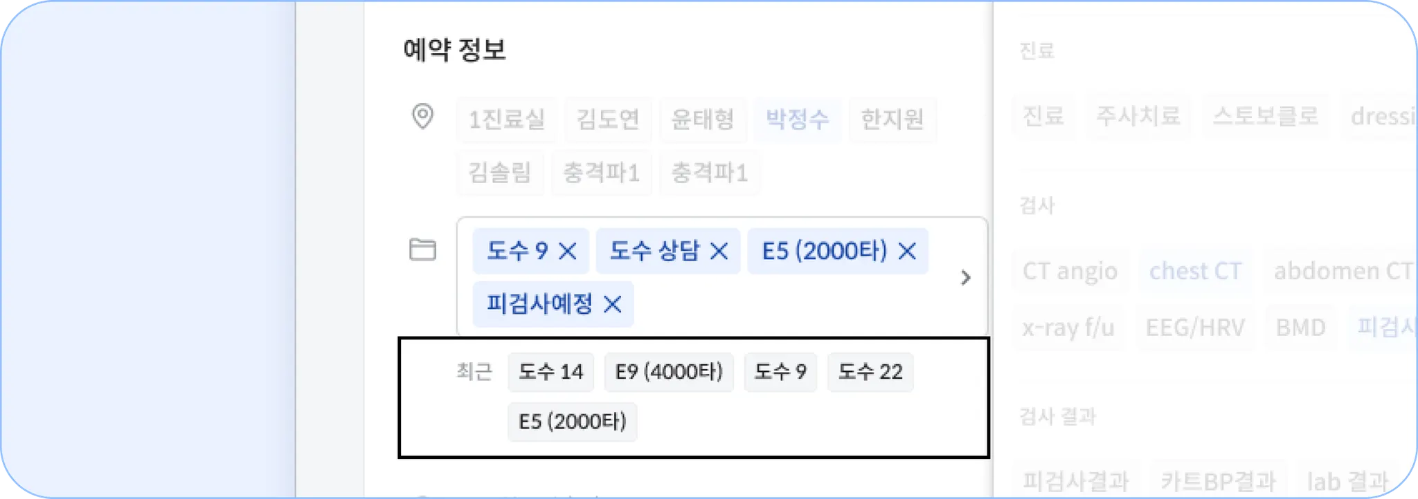 [예약현황판] 최근에 선택했던 진료 구분이 표시돼요.