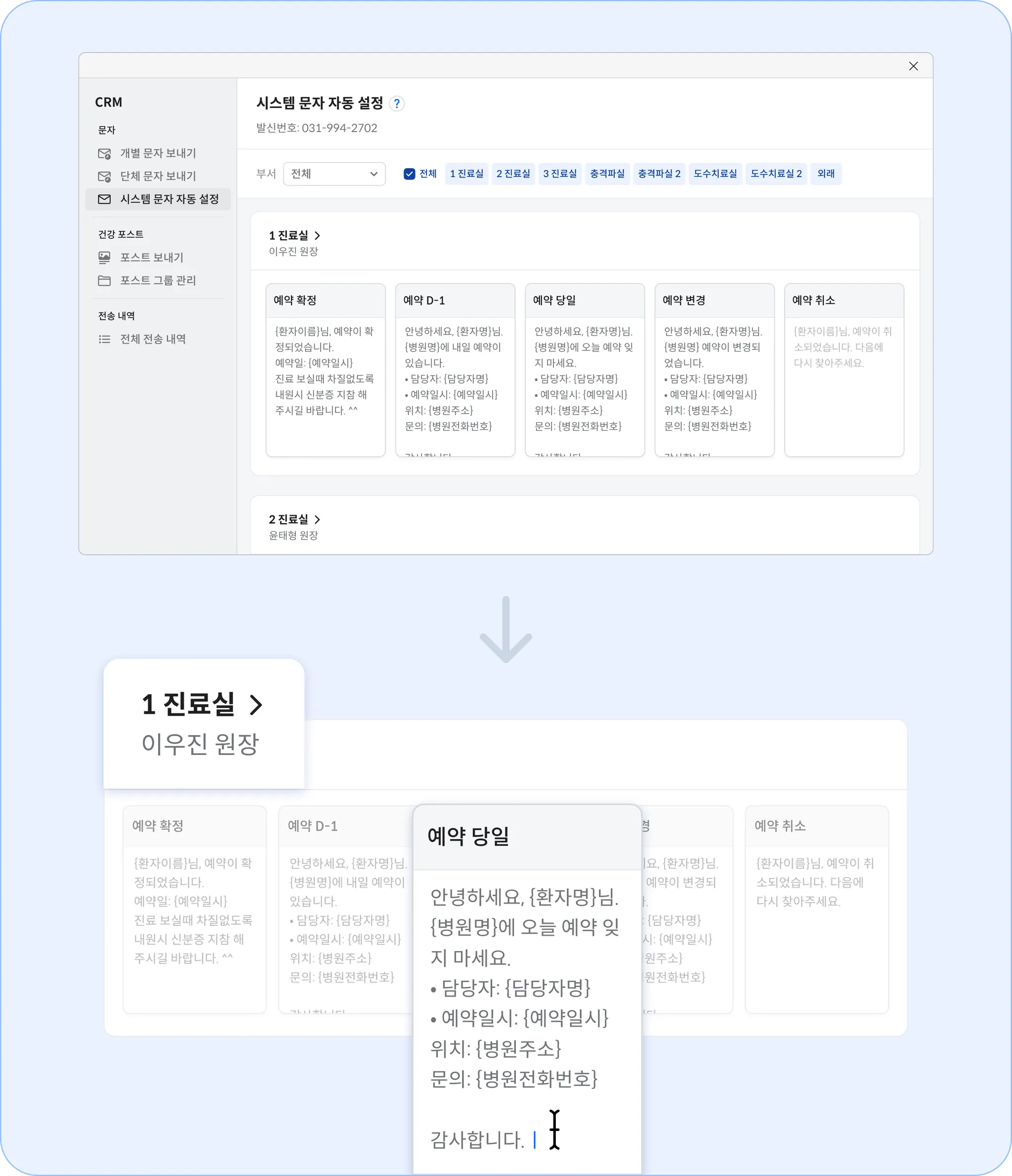 진료실마다 별도로 예약 문자 설정이 가능해져, 진료 유형이나 담당자에 맞는 안내가 가능해졌어요.
