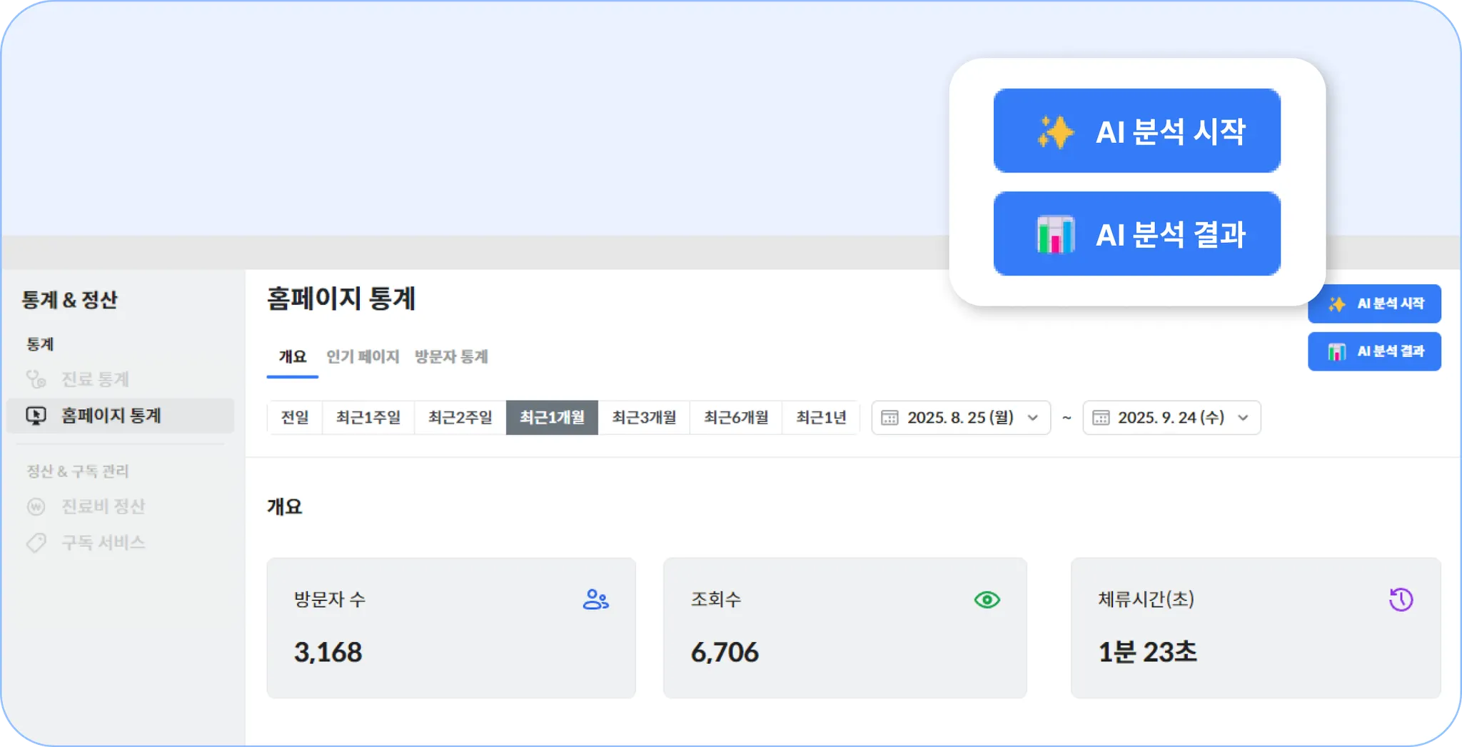 홈페이지 통계에 AI 리포트 기능이 추가됐어요
