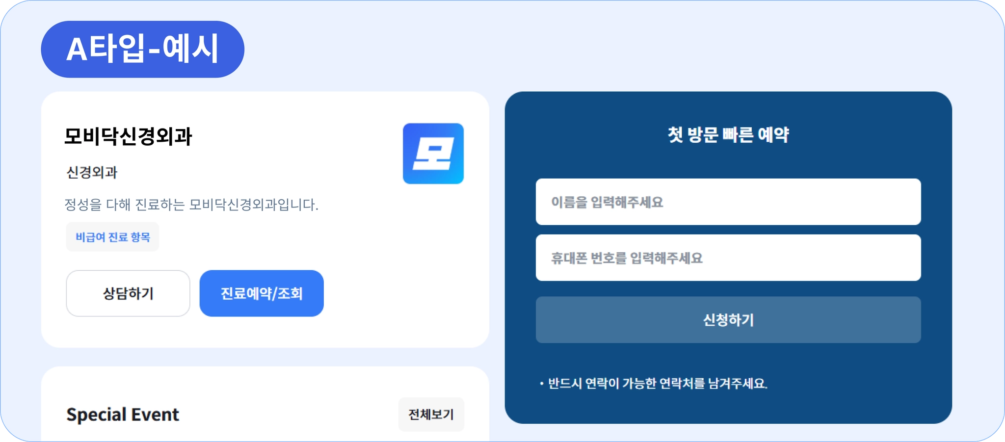 첫방문 빠른 예약을 A, B, C타입에서도 이용할 수 있어요.