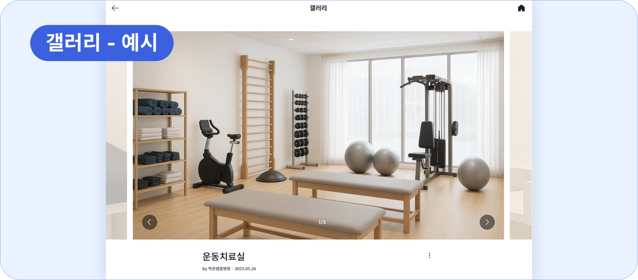 갤러리와 의료장비 상세 페이지가 밝은 화이트 테마로 바뀌었어요.