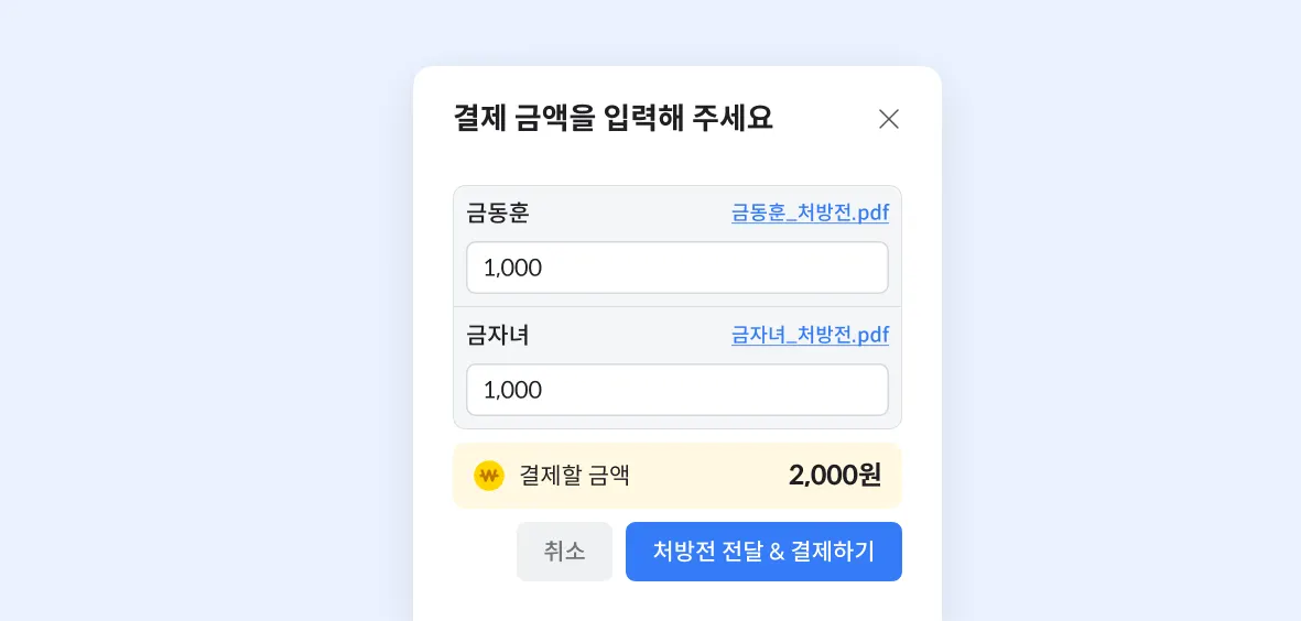처방전과 진료비는 각 구성원 별로 등록합니다.