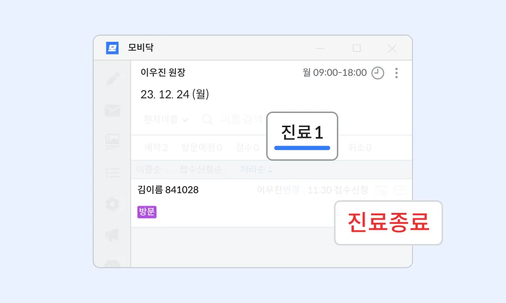 진료를 마치고 나온 환자는 해당 탭에서 진료 종료 버튼을 클릭해 주세요.
