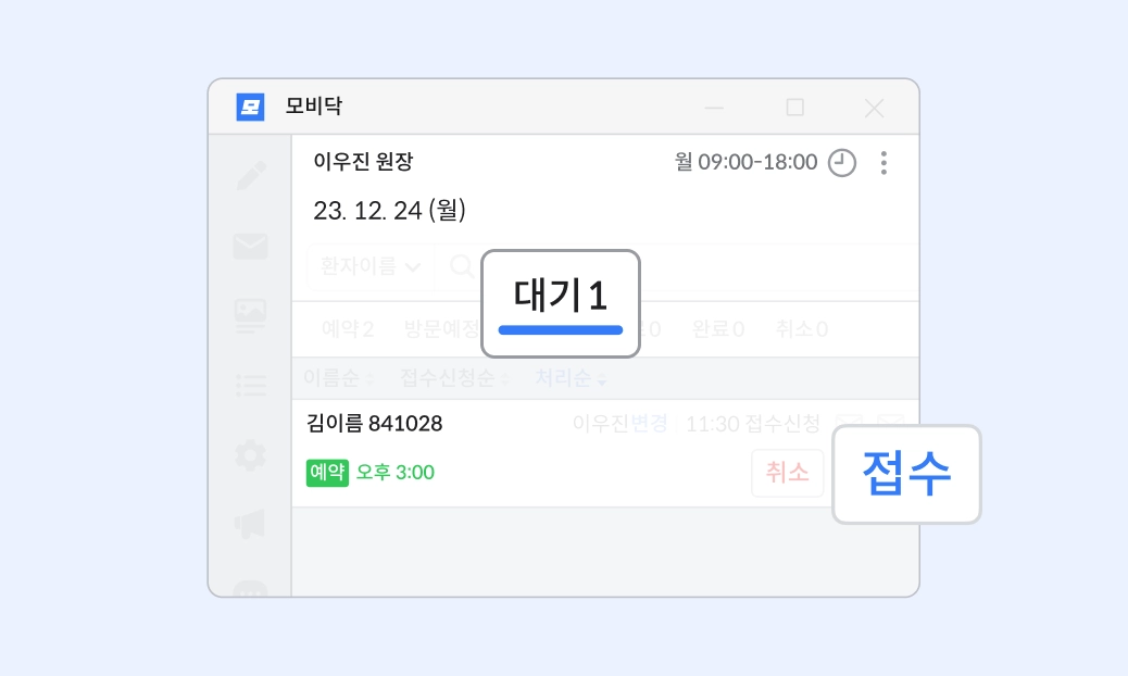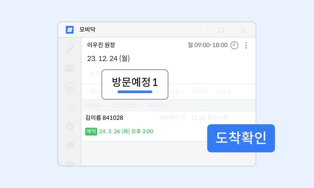 클라이언트에서도 환자 예약 등록 및 관리가 가능해요.