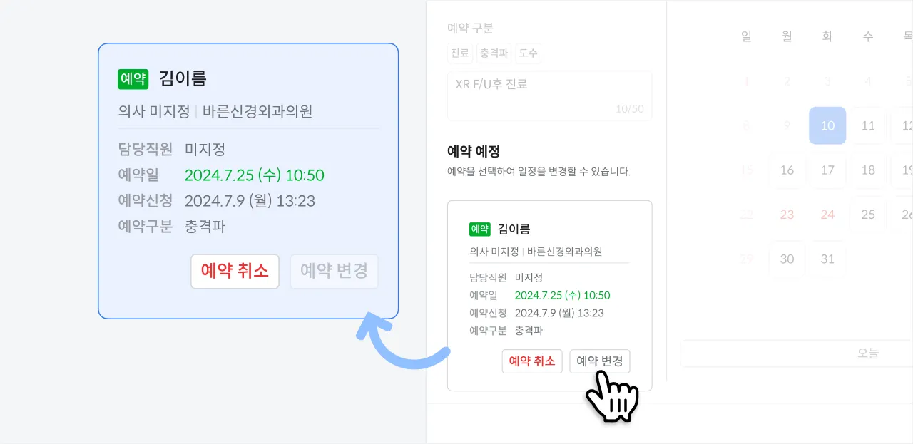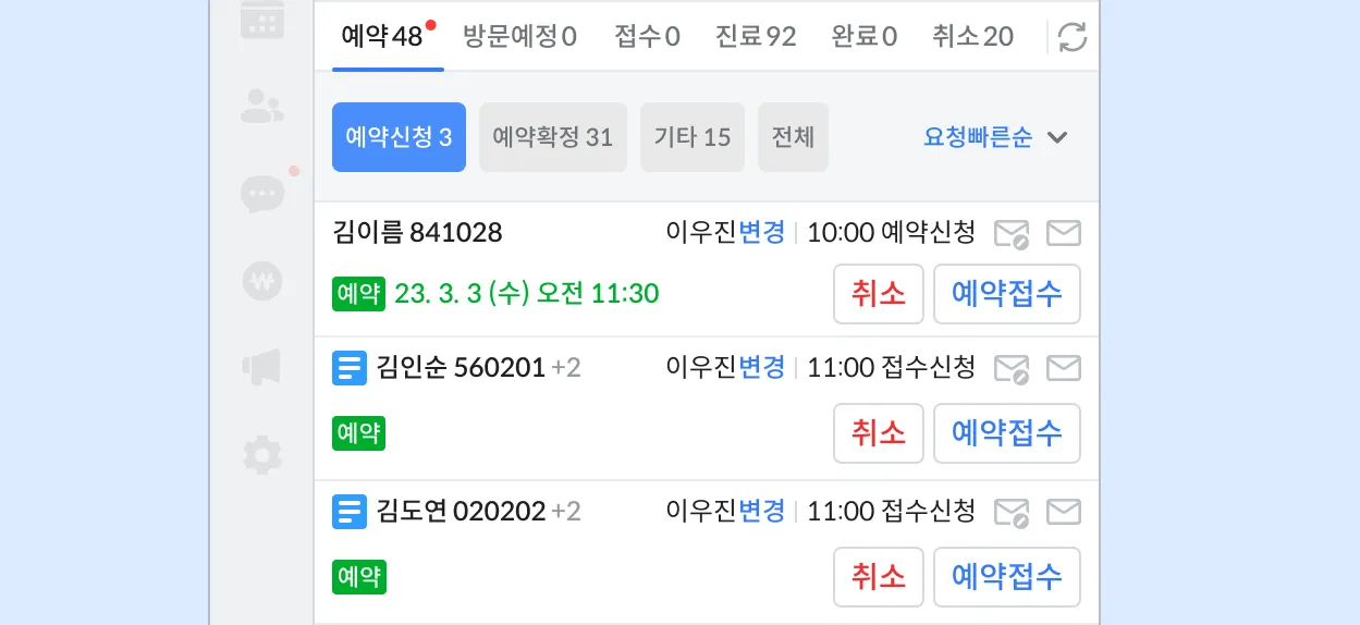 환자가 신청한 예약은 아래와 같이 처리합니다.
