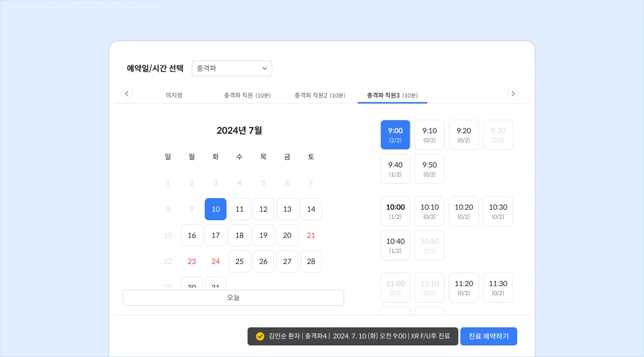 * 병원 예약은 같은 날짜에 중복 접수가 가능해요.
