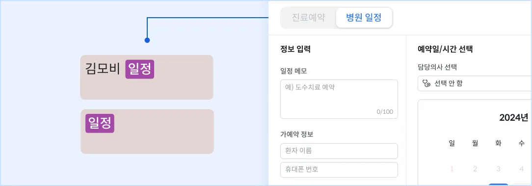 병원 내부적인 일정, 변동 예정의 예약 건, 가예약 등의 상황은 병원 일정으로 등록해 보세요.