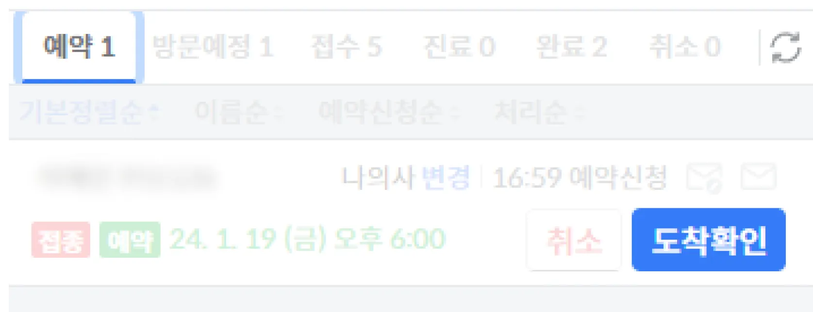 예약 시간 5분 전인 오후 2시 55까지 도착이 확인되지 않으면, 환자에게 푸시 알림을 보내드려요.
