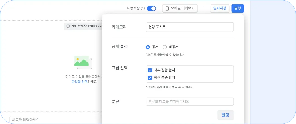 건강 포스트 발행하기