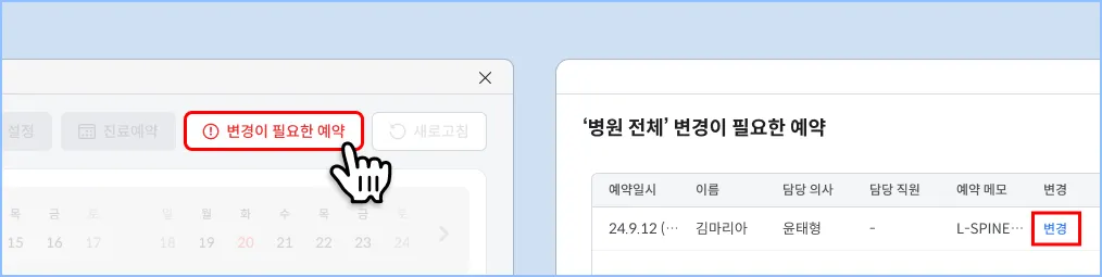 진료 또는 근무 시간을 변경했을 때, 미처 확인하지 못한 예약 건이 있는지 알 수 있어요