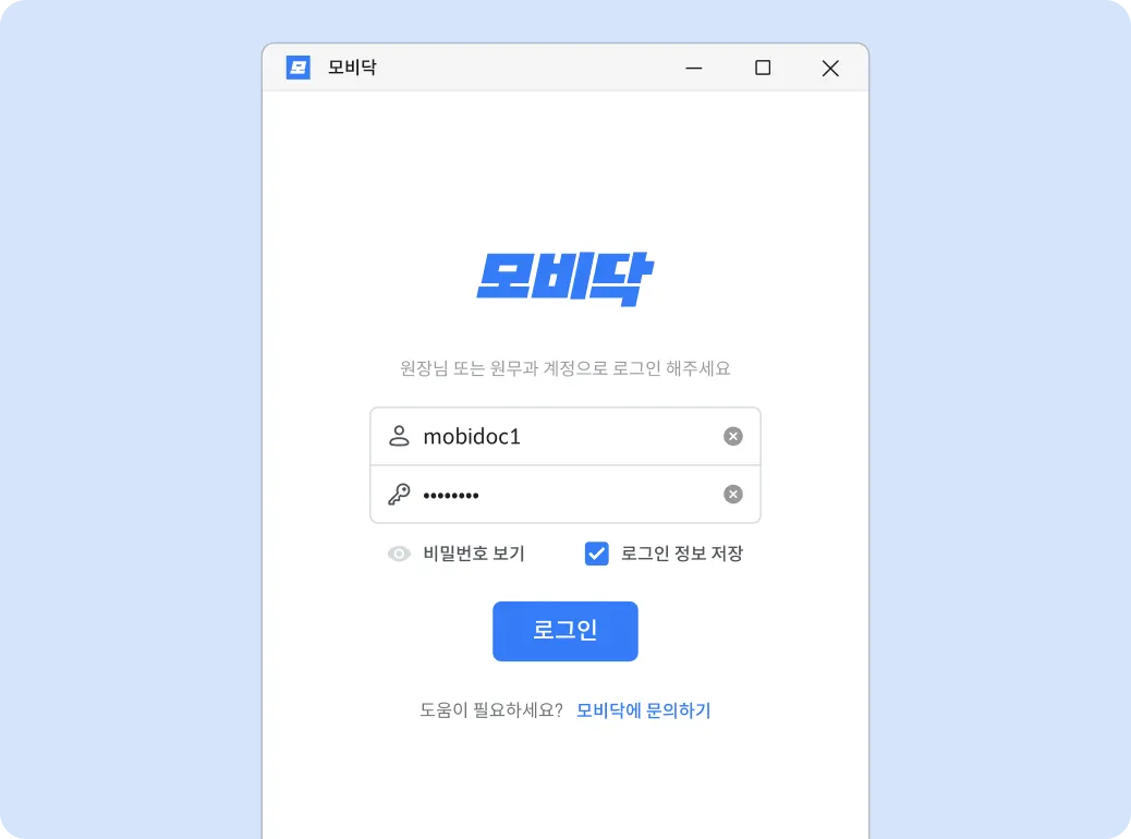 로그인 화면에서 [로그인 정보 저장] 버튼을 클릭 후, 병원 또는 의사 계정 ID와 비밀번호를 입력해 주세요. (최초 로그인 조작을 마쳐야 해당 계정의 정보가 저장됩니다.)
