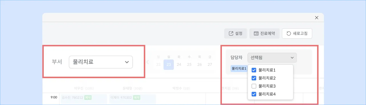 원하는 직원의 스케줄만 모아서 확인할 수 있는 필터 기능이 추가되었습니다.