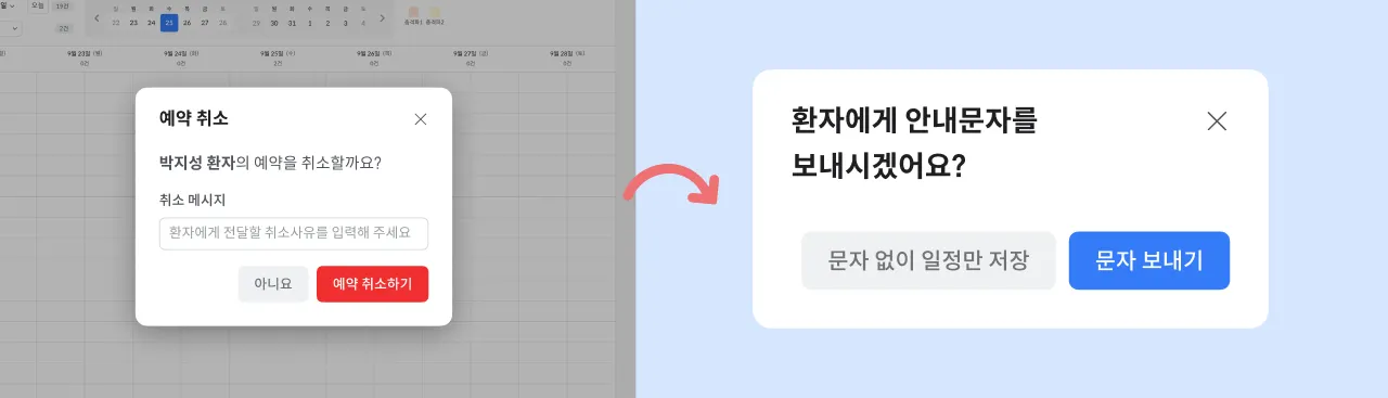 진료 예약 추가, 변경, 삭제 시 환자에게 알림을 보낼지 선택할 수 있습니다.