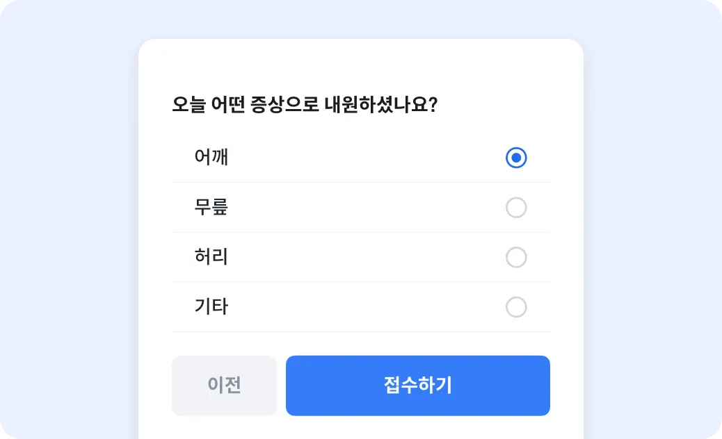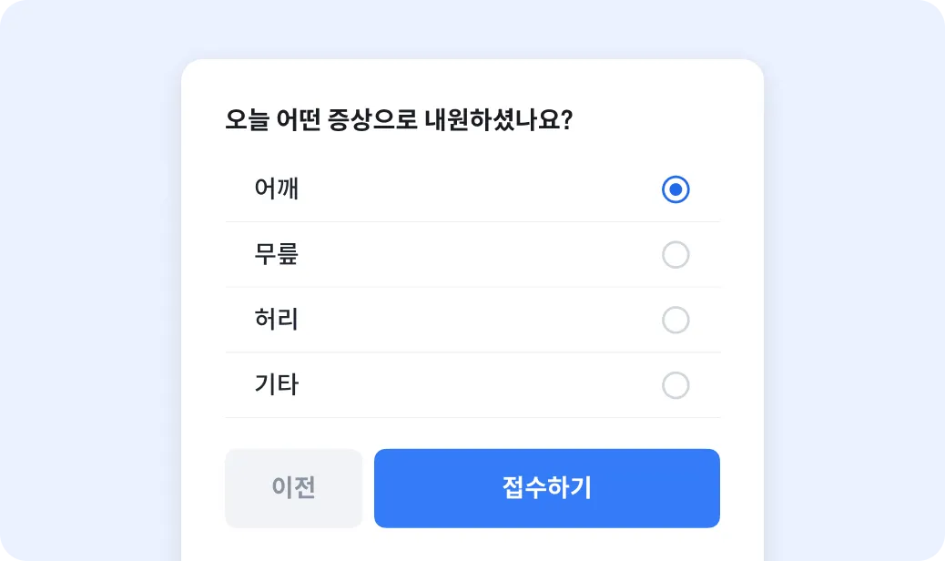 증상을 선택하고 “접수하기” 버튼을 클릭합니다.