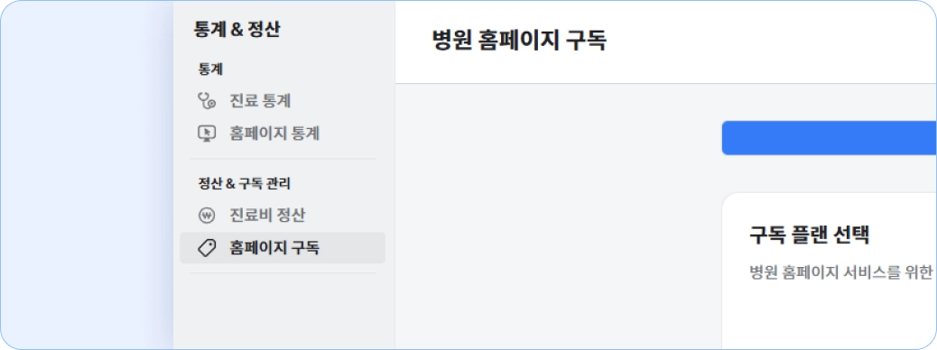 메인화면 좌측의 그래프 모양 아이콘을 클릭하고, 새 창이 열리면 홈페이지 구독 탭을 클릭합니다.