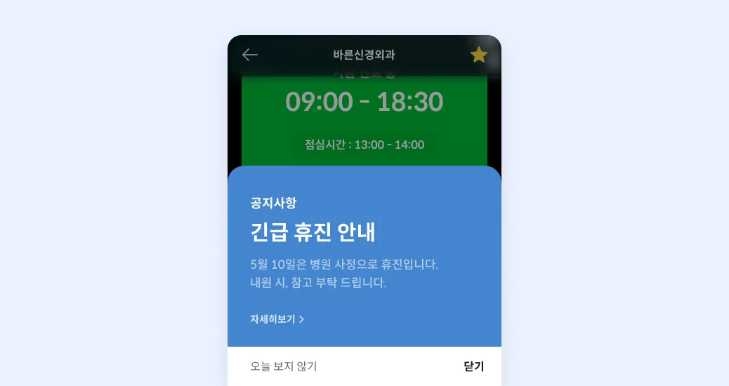 홈페이지 최상단에 안내할 내용을 등록하는 기능입니다.
