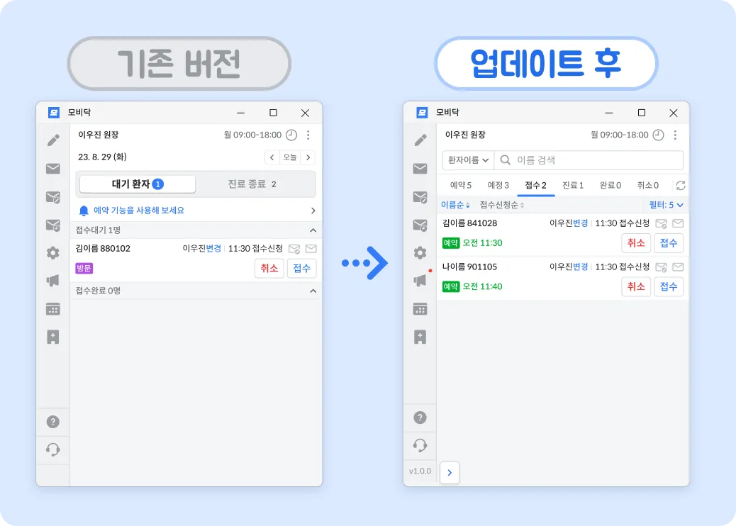 (오늘 방문한 환자와 미도래 예약 건에 대해서도, 검색으로 빠르게 정보를 확인할 수 있습니다)