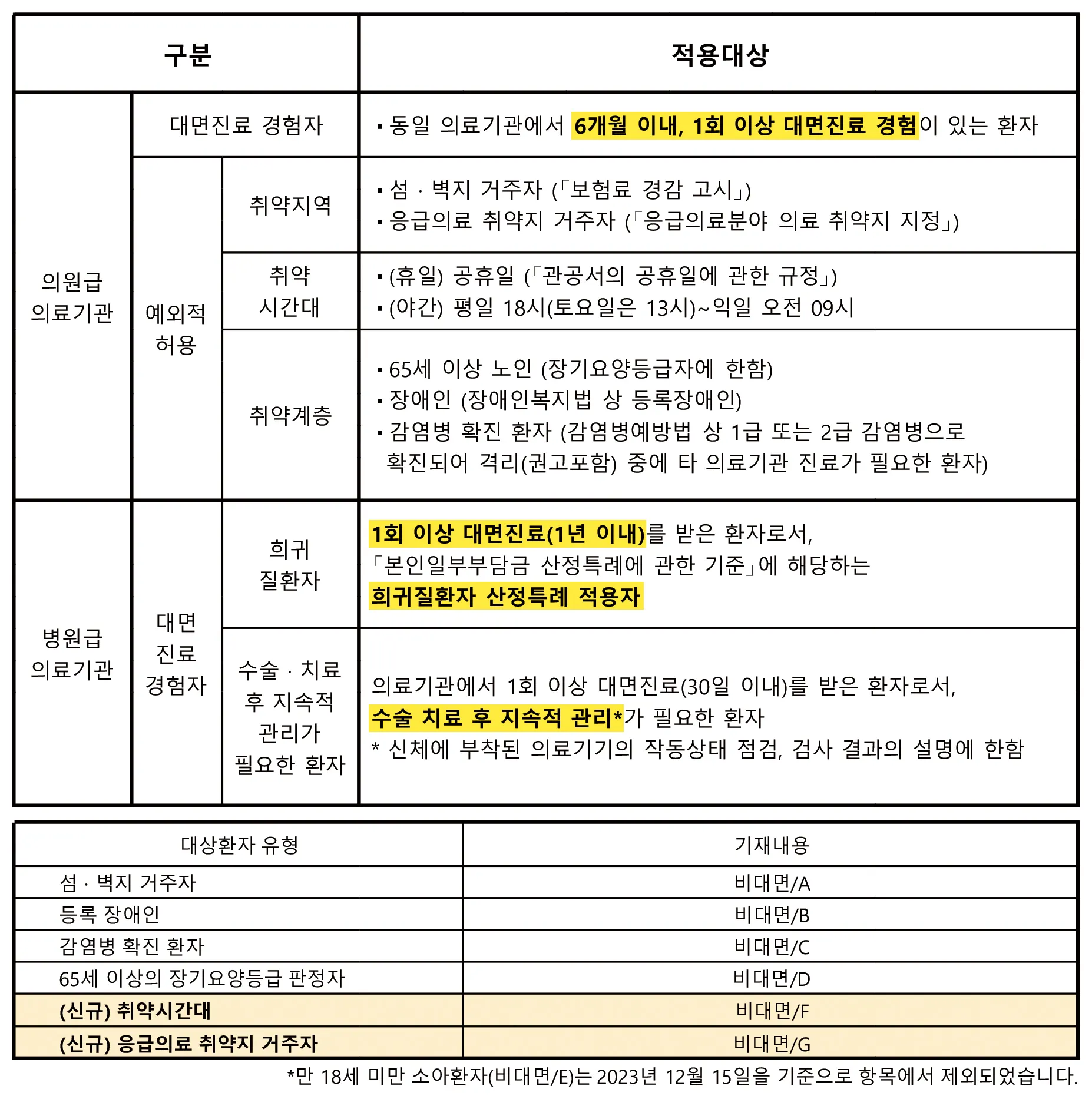2023년 12월 15일을 기준으로 비대면진료 시범사업 개정안에 대해 안내 드립니다. 원활한 원격진료 사용을 위해, 아래 내용을 반드시 참고해주시기 바랍니다.
