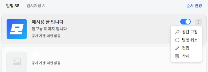 작성하던 글을 나중에 따로 발행하고 싶어요