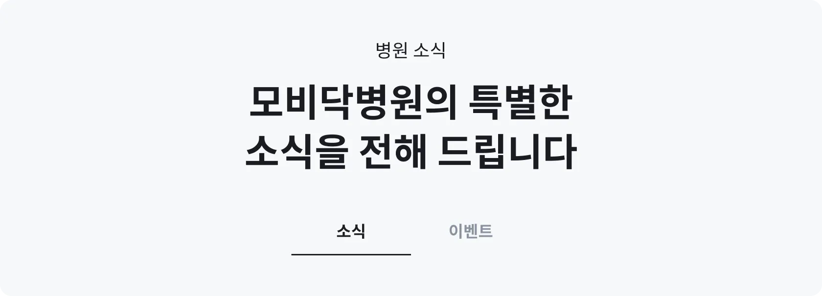 위 이미지처럼 우리 병원 소식 또는 이벤트를 안내하는 문구를 입력할 수 있어요!